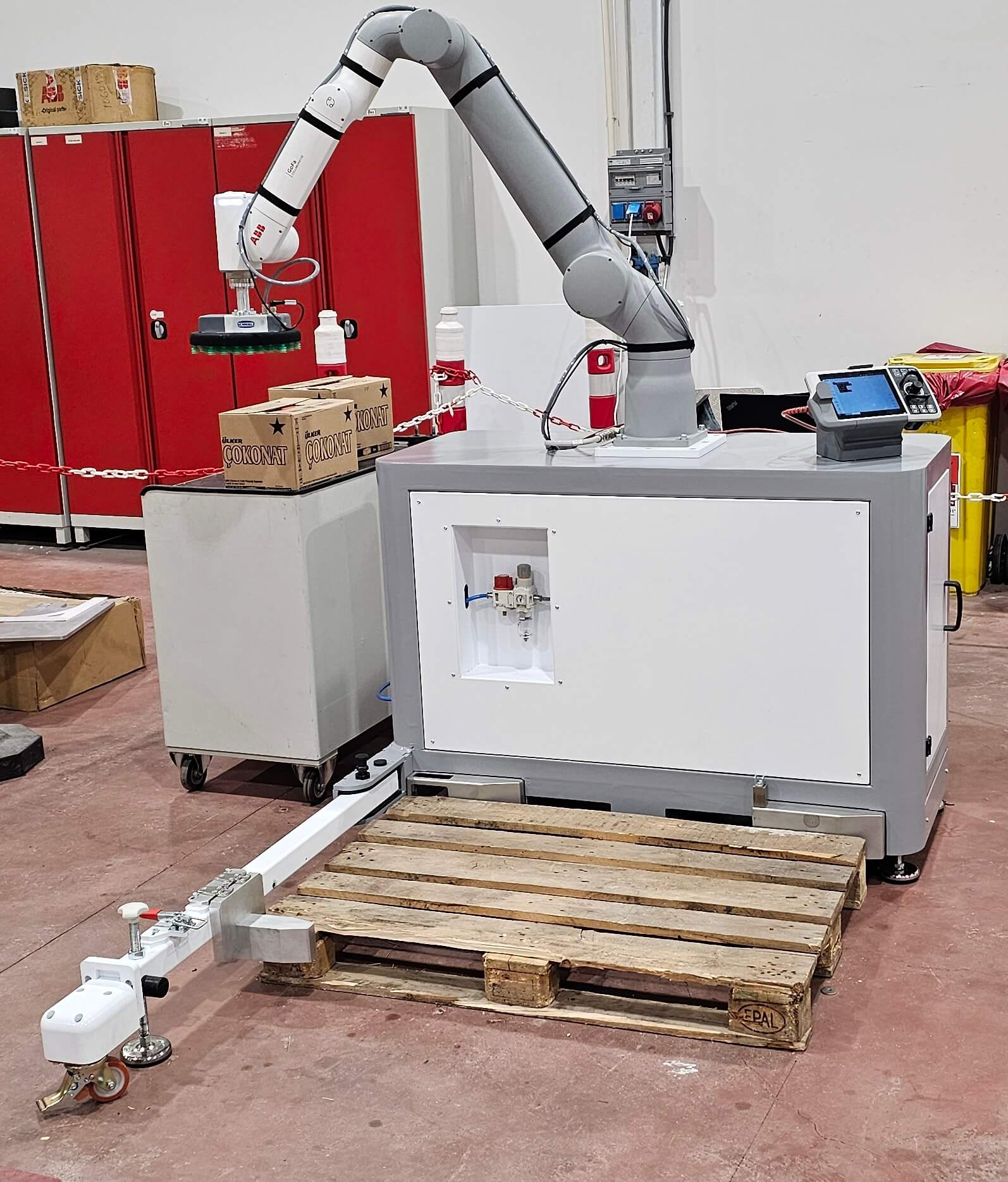 Portatif Paletleme Sistemimiz, otomasyonun hızlı şekilde devreye alınmasını sağlayan tak-çalıştır (plug-and-play) bir çözüm sunar.
