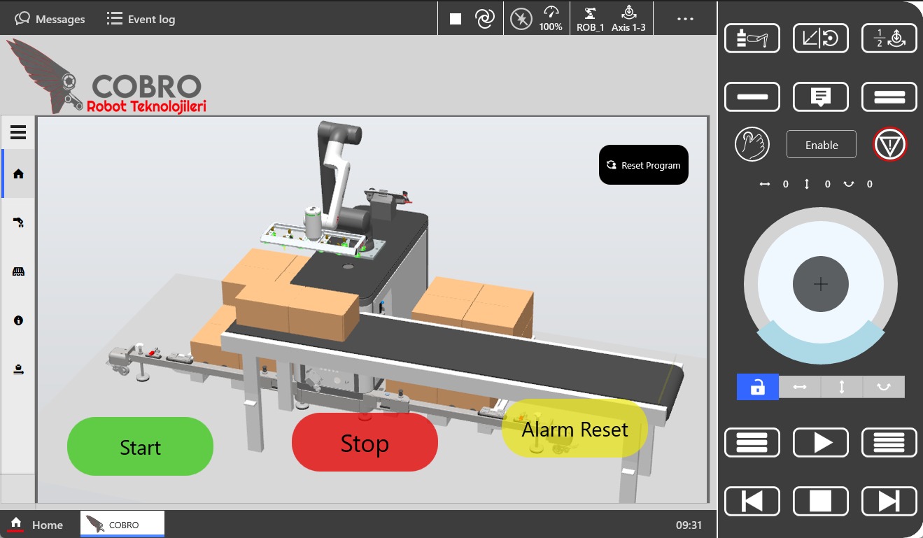 - Robot pendantı ekranındaki kolay kullanıcı arayüzümüz sayesinde tek tuşla kaldığınız yerden üretime devam edebilirsiniz.